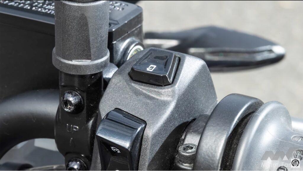 非常に見やすいと紹介されているデジタルメーターは気温や燃費情報、時計など充実したものとなっている。また右スイッチにはアプリをダウンロードすることでスマホとコネクトするスイッチが存在する。スイッチ操作によりスマホのアプリなどを切り替えることが可能だ。