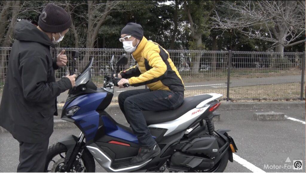 エンジンはトルクフルな印象でスムーズに気持ちよく車速が伸びていくイメージ。車体の軽快感もこうした部分から得られているのかもしれない。またライポジは身長が高めな人に向いているようだ。またケニー佐川はステップにも注目している。通常の位置だけでなくフォワードコントロール的に前へ投げ出すことが可能で、これだけなら他のスクーターにも盛り込まれている。SR GT200には通常ポジションの時につま先をホールドしてくれる部分があるため、車体の押さえ込みに有利なのだ。さらにバックステップ的に後ろ寄りにすることも可能で、スポーツライディングに適したポジションを取ることができる。動画ではさらにSR GT200の特徴を紹介しているので、ぜひ視聴することをオススメしたい。