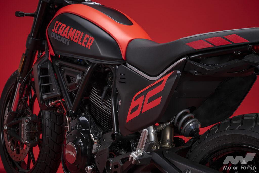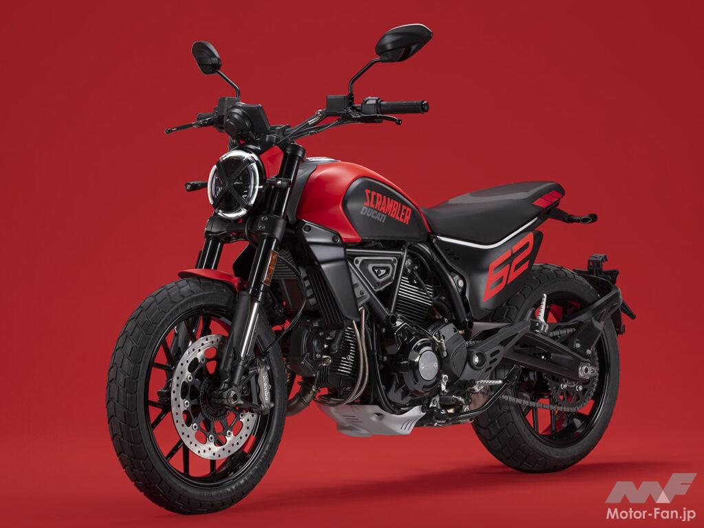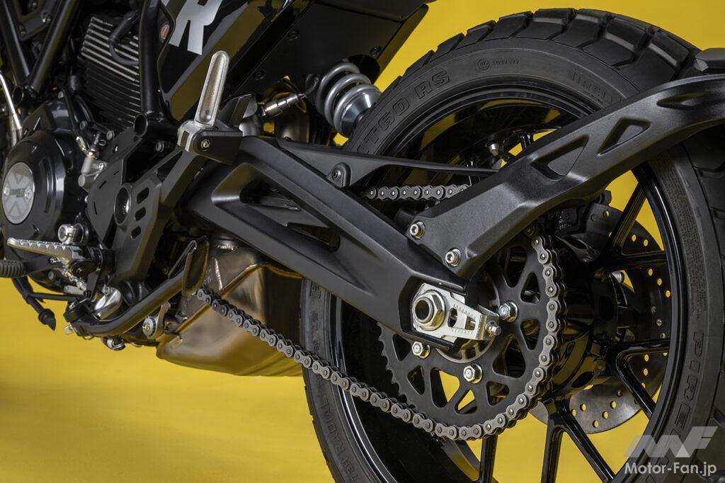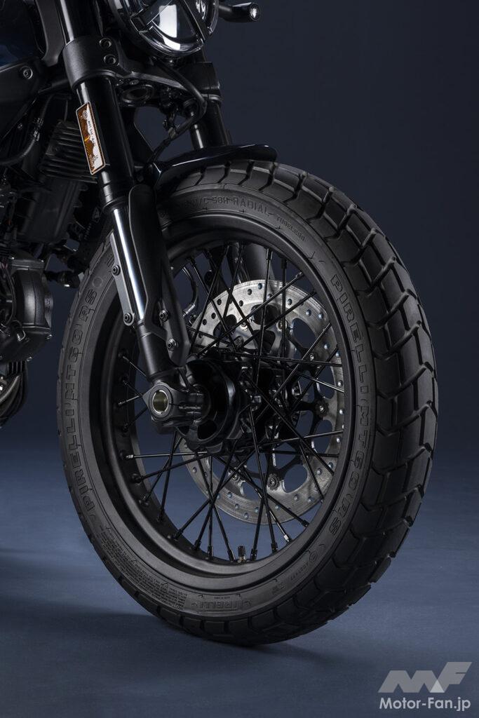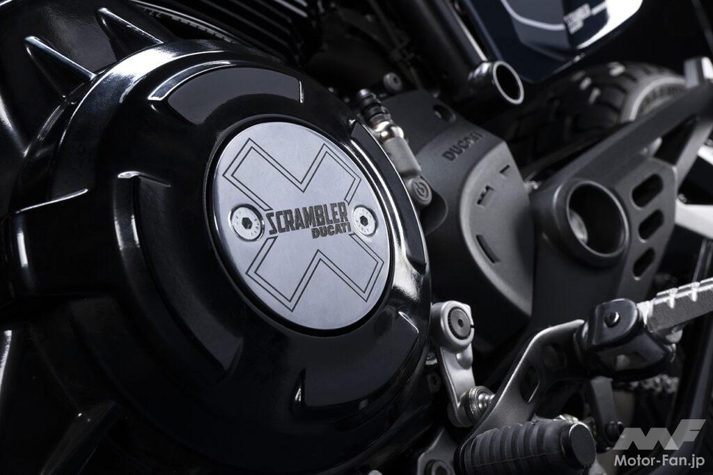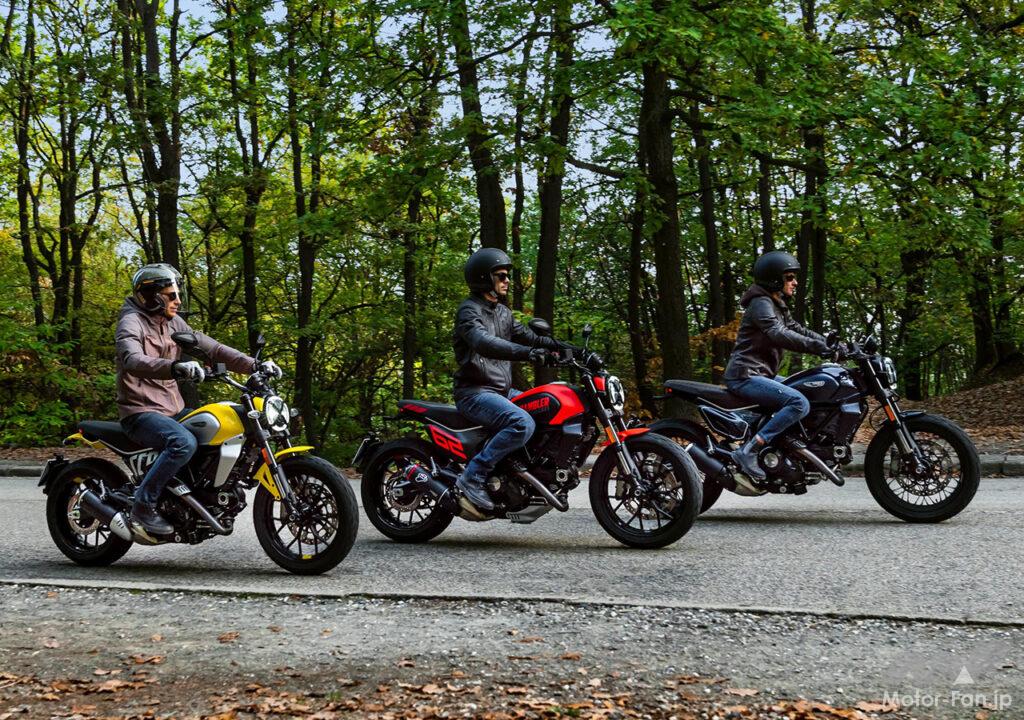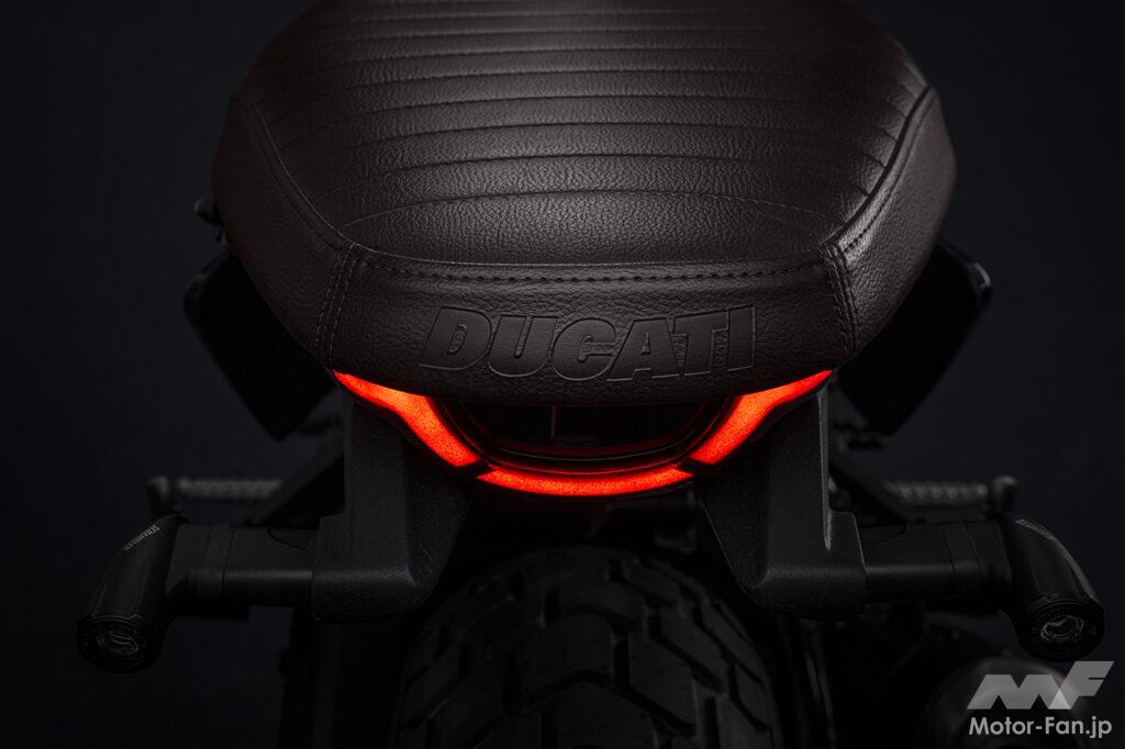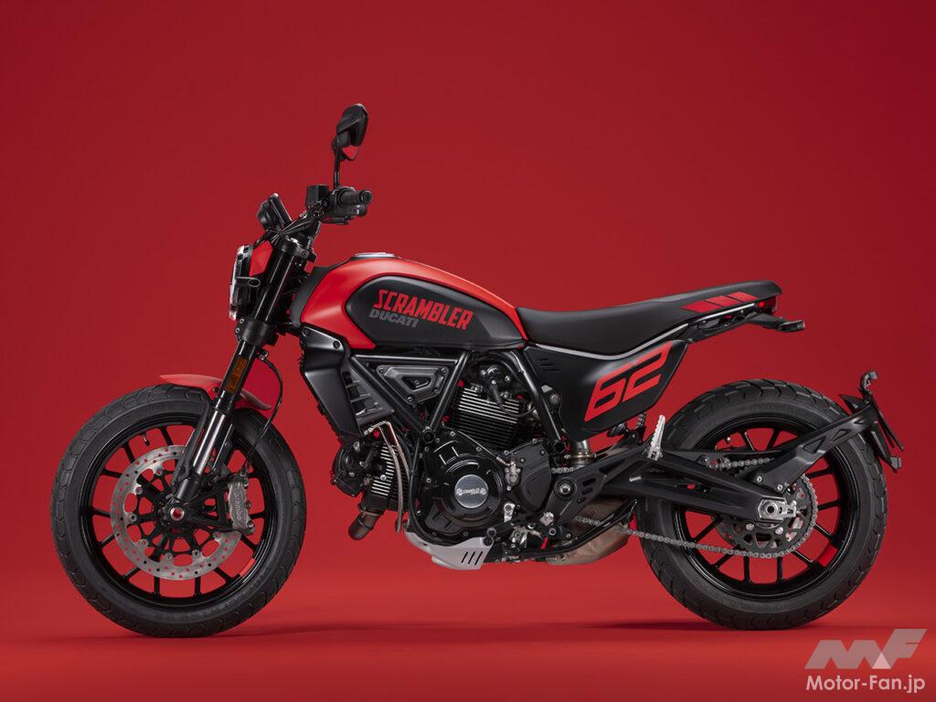 空冷4ストロークL型2気筒803ccのデスモドロミック2バルブエンジンを搭載したモデルは、2019年モデルより登場。今回発表された2023年モデルは、タンクやテールのデザインを一新。また、シャシーのベースとなるトレリスフレームとスイングアームも変更された。