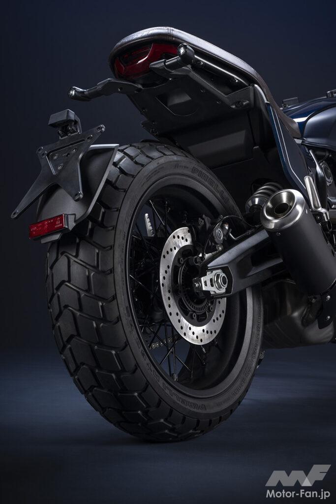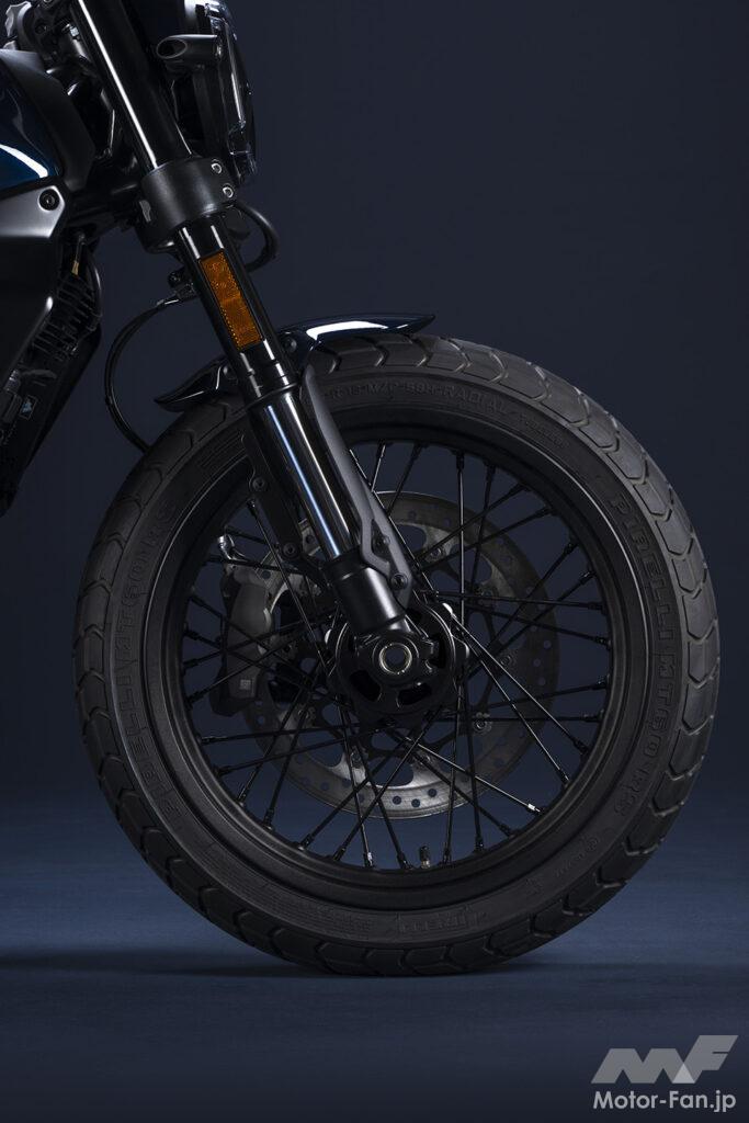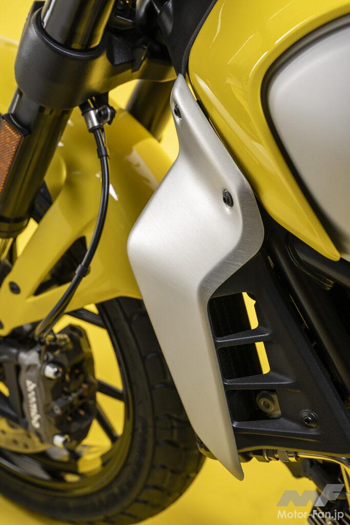 前モデルに比べ、2023年モデルはシリーズ3モデルとも、車体重量を約4kg軽量化して扱いやすさを向上。新設計のホイールは、フロント18インチ、リア17インチの異型サイズに設定。フロントフォークとリアショックは前モデルと同様、倒立型フォーク&モノショック型が採用されている。