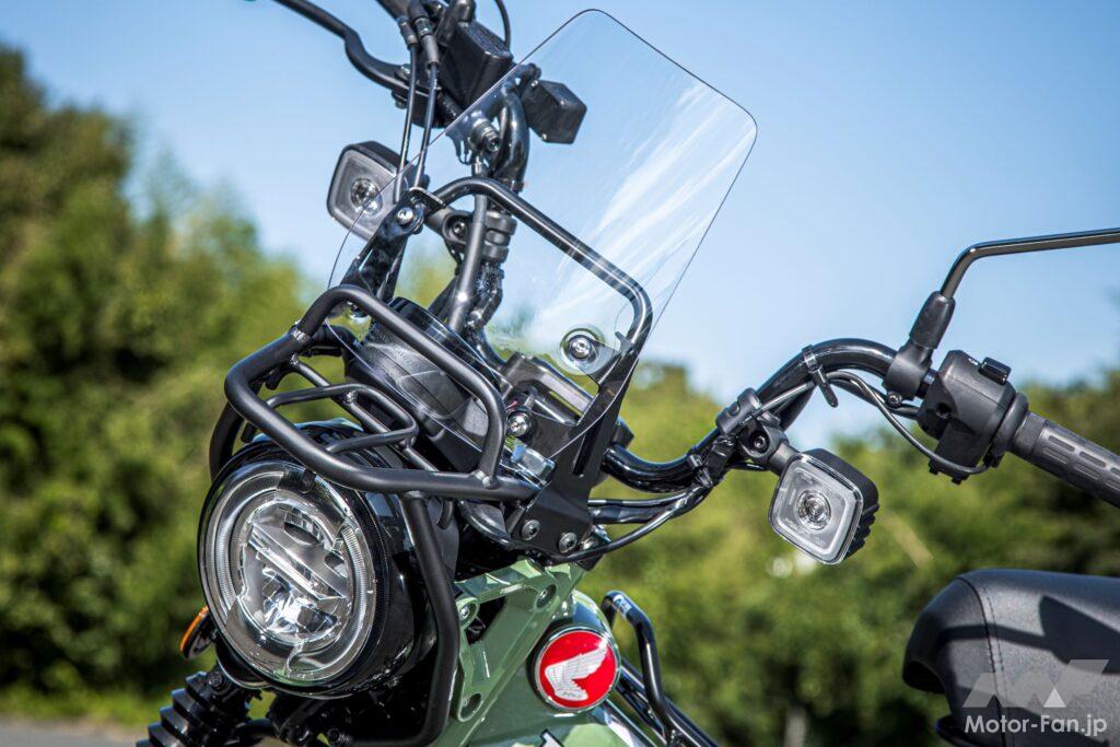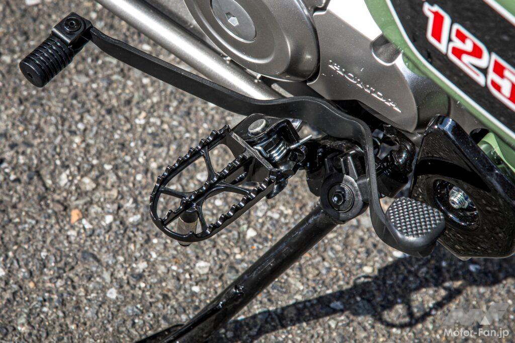 二次減速比の変更に伴ってか、ホイールベースは1255mmから1260mmへ。また、車重は120kgから118kgへとダウンしている。あくまで推測の域を出ないが、モンキー125が最新エンジン搭載で3kg軽くなっていることから、このパワーユニット自体が軽いことが考えられる。