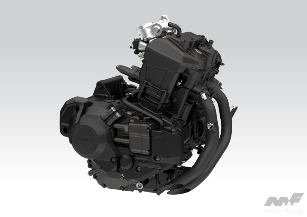 クランクは不等間隔の爆発が得られる270度位相タイプ。Vツインの感覚に近い駆動力特性が得られることでも知られている。OHCのバルブ機構にはホンダ独自のユニカム構造を採用。