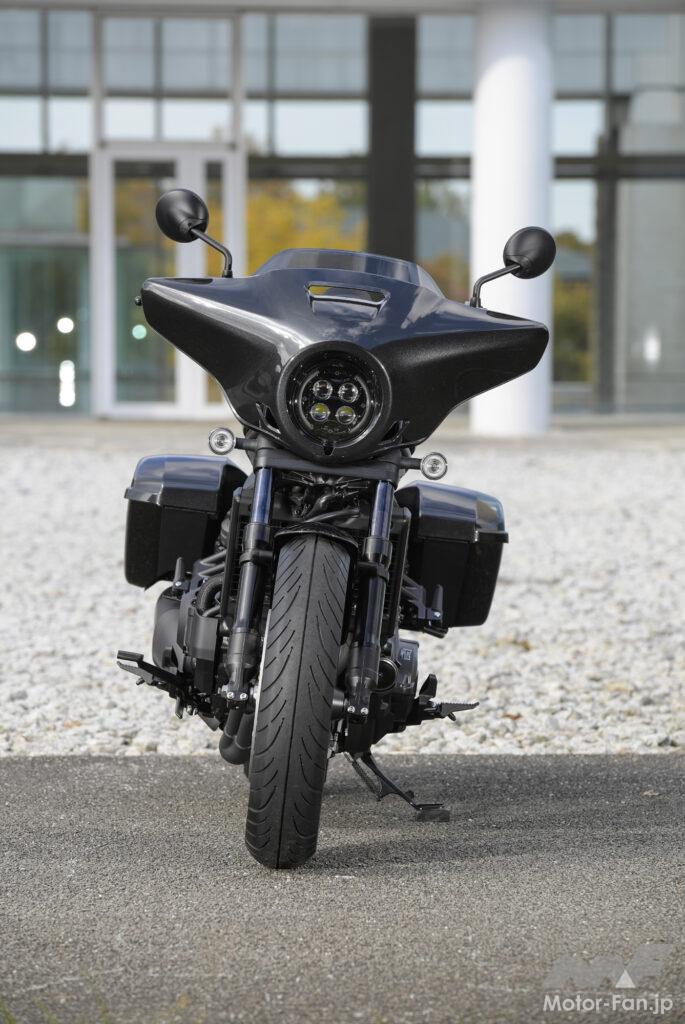 大型と言っても、スクリーンは低くデザインされ、ヘッドライトからハンドルまわりをワイドにカバーする軽快なスタイリング。アメリカンのハーレーダビッドソンで例えるなら、SPORT GLIDE的なライト感覚で仕上げられているのが好印象である。