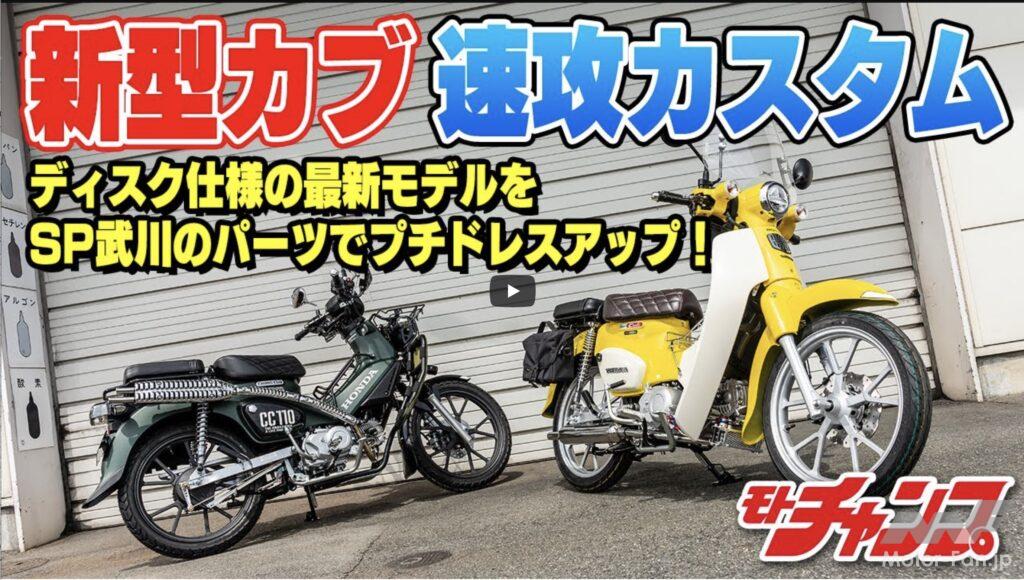 ユーチューブでオリジナル動画を無料配信しているモトチャンプTV。プログラムには「カブ」「新型車研究所」「パーツ紹介」「スクーター」など、モトチャンプが得意としている内容をジャンルごとに用意している。今の話題は何といっても新型スーパーカブ110とクロスカブ110で、先日もディスクブレーキ装備でどう変わったのかを紹介する記事を公開した。公開と同時に多くの反響をいただいたからというわけでもないが、モトチャンプTVにはさらに新型カブ110のカスタムを紹介する記事もアップされている。それが今回紹介する「ディスク仕様の新型カブ、速攻カスタム!」だ。新型のスーパーカブ110とクロスカブ110をスペシャルパーツ武川が早速カスタムしてくれた。新製品には注目のディスクブレーキや新型エンジンに対応させたものも含まれているので、新型カブを買ってカスタムする予定があるなら必見の内容。そこで今回は動画のなかから注目パーツをピックアップしてみた。