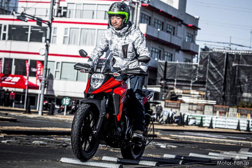 なお、波状路で擬似的な悪路走破性を試してみたが、フロント19インチゆえに17インチ車よりも障害物を乗り越えやすいことを確認できた。加えてホイールベースもジクサーシリーズより95mm長いので、少々バランスを崩したとしてもフラつきにくい。前後サスの作動性はそれなりだが、フラットダートであれば十分に楽しめそうだ。
