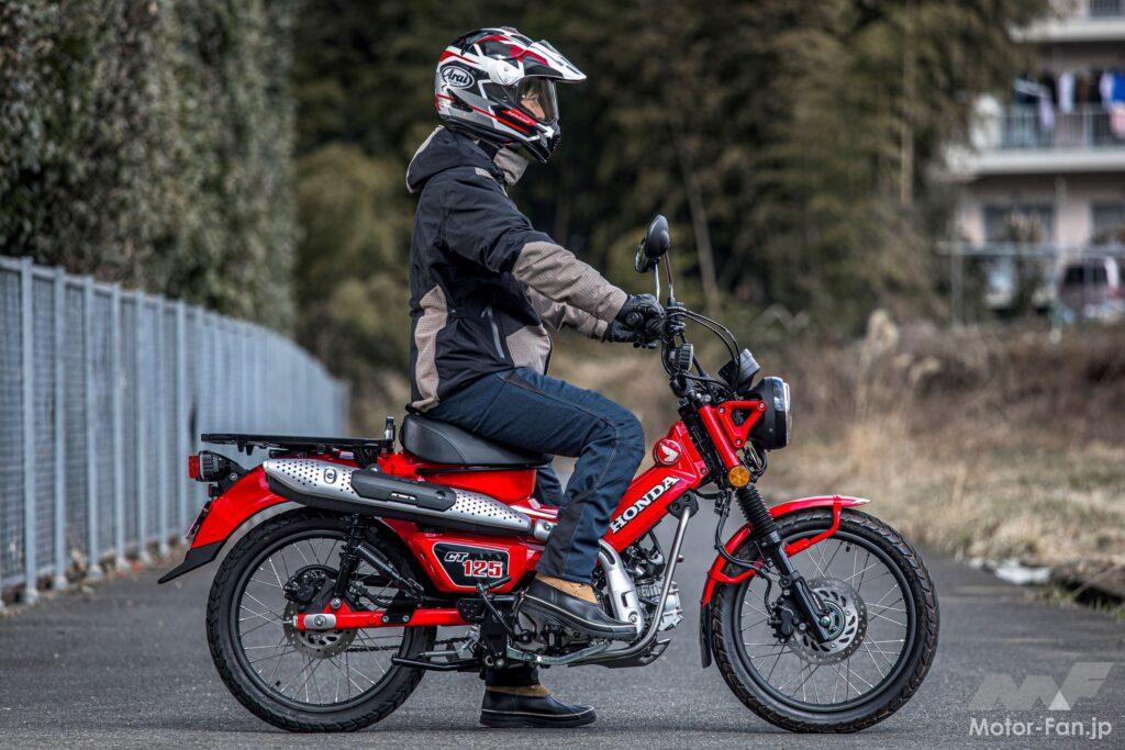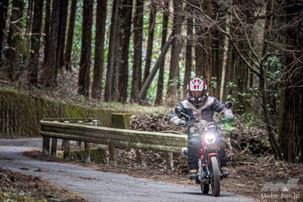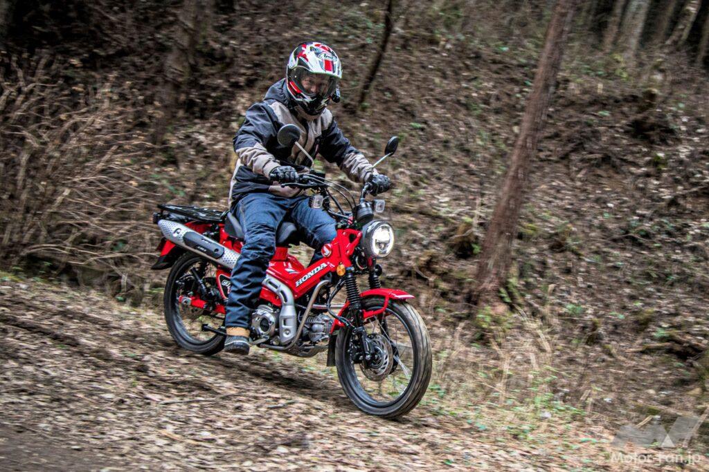 とはいえ、ハンドリングの印象については基本的に旧モデルから変わらない。スーパーカブC125ベースのバックボーンフレームながら、発生するピッチングや舵角の入り方は一般的なモーターサイクルに限りなく近く、フロント周りの剛性の高さもあって下りコーナーでも狙ったラインをトレースしやすい。乗り心地の印象も旧型から変わらず、今回は標準セッティングしか試さなかったが、突き上げ感が増えたなどのネガは全くない。