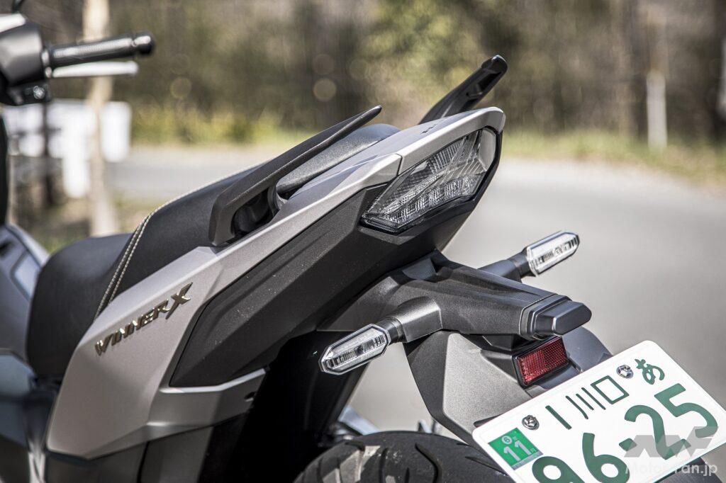 ホンダのNCシリーズのバリエーションでかつて「インテグラ」というモデルがあった。スクーターとスポーツバイクのハイブリッド的位置づけという意味で、このウイナーXはあのインテグラにも似た印象を受けた。ポジションは楽で、アンダーボーンという見た目から、なんとなく感覚的には親しみやすさや気軽さが確かにある。それでいて実は普通の、いや、普通以上のスポーツバイクでもある。そんなギャップが楽しい。