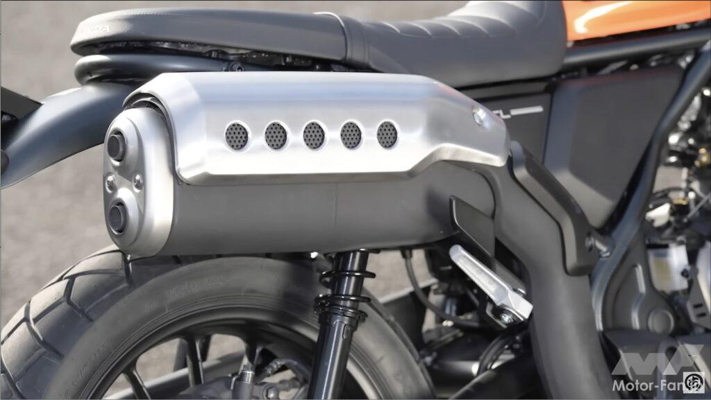 注目なのが純正アクセサリーを装備したカスタム仕様が存在することだろう。Cross Stlye(クロススタイル)をコンセプトに開発された、スクランブラーらしさをさらに追求した外装や装備も発売されている。ヘッドライトバイザーやナックルガードは走行時の快適性を向上させるだけでなく快適性も高まるアイテム。前後フェンダーはオフロードバイクらしさを演出してくれ、落ち着いた色調のフラットシートはラリーステップとともにオフロードライディング時に威力を発揮。写真にはないが積載性を向上させるリヤキャリアやトップボックス、サドルバッグなども用意されている。今、最も注目した250ccクラスの1台と言えるだろう。