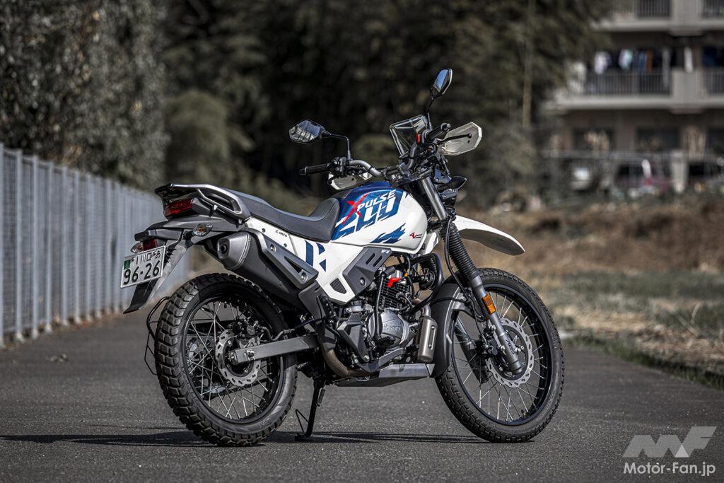 フロントに21インチ、リアに18インチのホイールを履くことで「オフ車」イメージを抱いてしまいそうだが、13L容量を誇るタンクや純正装着のキャリア、車体の下を通るエキパイなど、よく見れば本気の「オフ車」というよりは「アドベンチャー」に近い構成と言えるX-PULSE。スキッドプレートやエンジンガードも純正装着していることもあって、走り出してもオフ車にしてはいくらか車体が重く感じられ、積極的に未舗装路を走るにはちょっと注意も必要。タイヤの設定含めて、オフ車のつもりで突っ込んでいくとオットト、という場面にもなりかねない。 反対に車格の大きさや足つきの良さなど、アドベンチャー/ツアラーとしては優秀で、とっつきやすさはかなり魅力的。オフ車ベースのホンダCRFラリーなどよりもより多くの人にとってハードルは低いのではないかと思う。