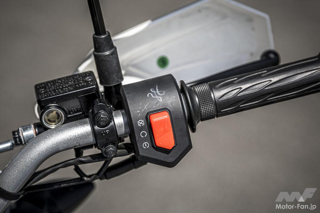 車体右側にはキックスターターも備えるためバッテリーが弱くなっても安心だ。