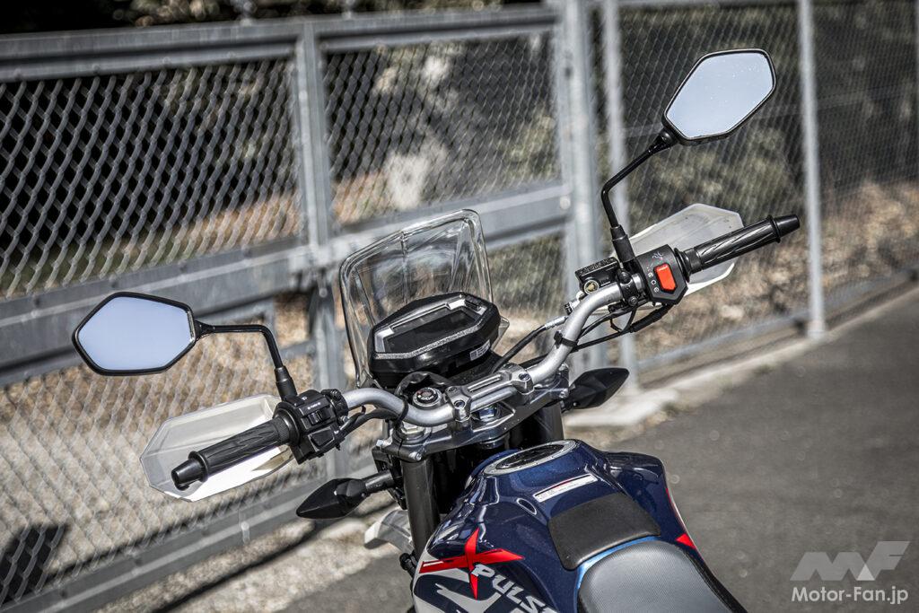 フルサイズの足周りを持っているX-PULSEだが、車体全体の重心は低めでサスの初期作動性もソフトなため、ワイドなシートを持っているにもかかわらず足つきは安心できると感じた。大きなハンドル切れ角と相まって、取り回しに苦労はないだろう。