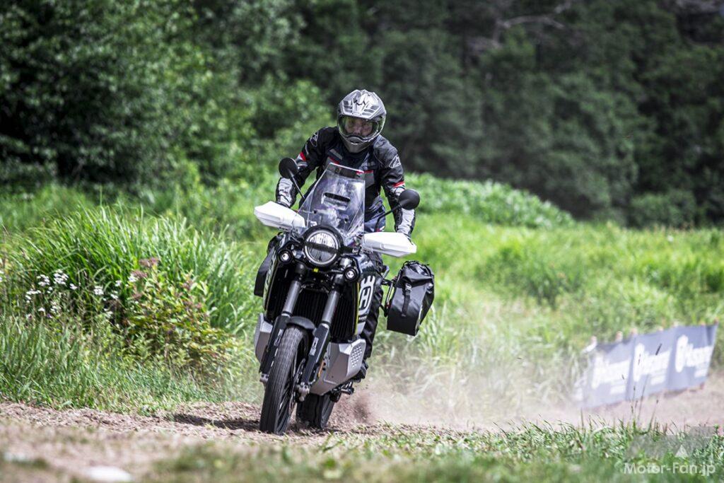 もちろん前後サスストロークが増えたぶん、路面の凹凸の吸収性は格段に上がっていて、ノーマルでは回避を考えるレベルの大きなギャップにも余裕で突っ込んで行ける。そしてその資質は、悪路での速さや難易度が高いセクションの攻略につながるのだが、普通に走っていても恩恵は十分に感じられる。おそらく、スタンダードのノーデン901とエクスペディションの2台でロングランに出かけたら、帰路につく頃の心身の疲労には大きな差が生まれるだろう。