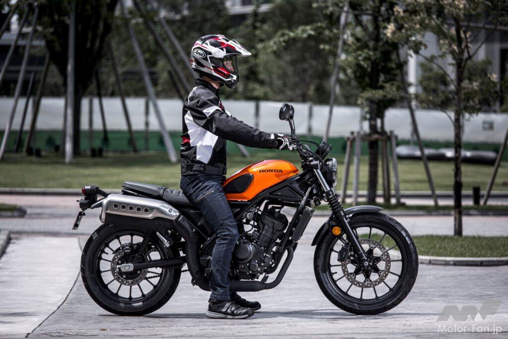 そんな万人/万ユース向けのCLだが、最初に言っておきたいのは「意外と大柄」ということだ。レブルがあれほどの爆発的ヒットとなったのは、「圧倒的に足がつき、ゆえに安心感が高い」ということがあるだろう。コンパクトで低重心ゆえに実重量以上に軽量に感じられ、かつ足つきが良いのだから初心者や小柄なライダーだけでなく誰でも気負わず乗ることができた。