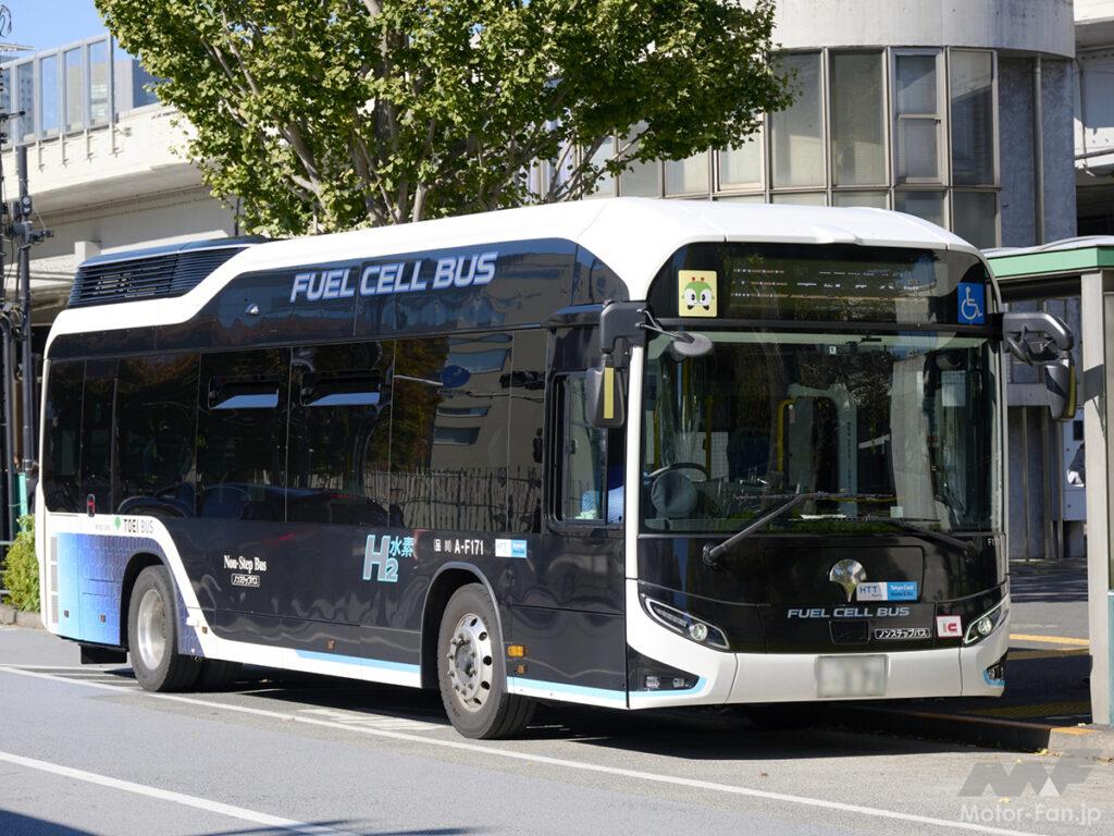 これらのバスの多くには、ボディに「水素」「H2」のロゴデザインをレイアウト。水素エンジンは、人々の日常の足として徐々に身近なものになりつつある。筆者は時々、これら“燃料電池車(FCV)”のバスを利用するが、乗り心地は化石燃料車とまったく変わりなく、音は非常に静かだ。