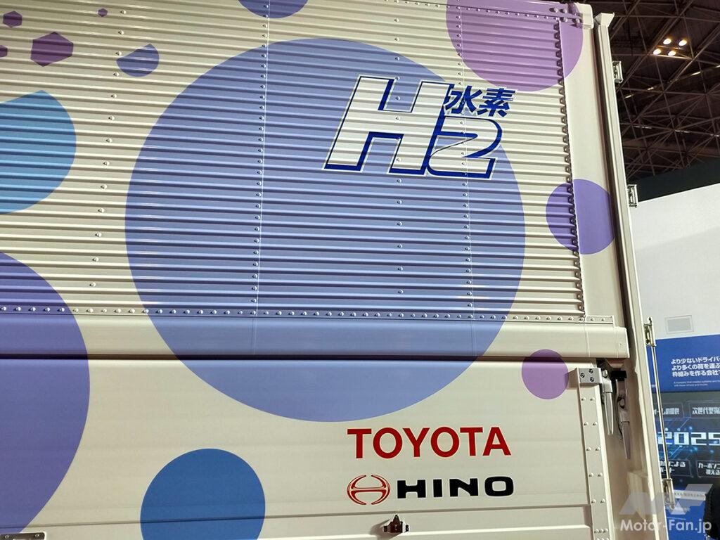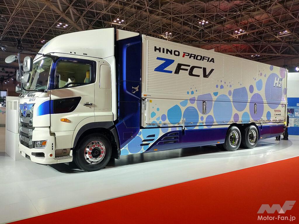 日野自動車ブースに展示された「燃料電池(FCV)」の大型トラック。