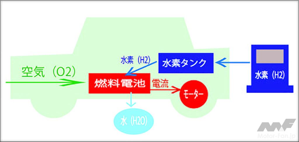 「水素と酸素」で発電し、モーターを動かす燃料電池タイプ(FCV)