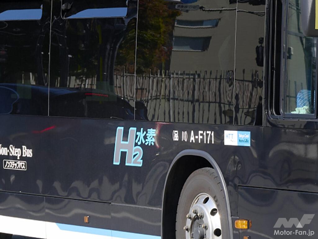 燃料電池車(FCV)で走る東京都内の乗り合いバスの多くには、ボディに「水素」「H2」のロゴを表示。写真はイメージ。