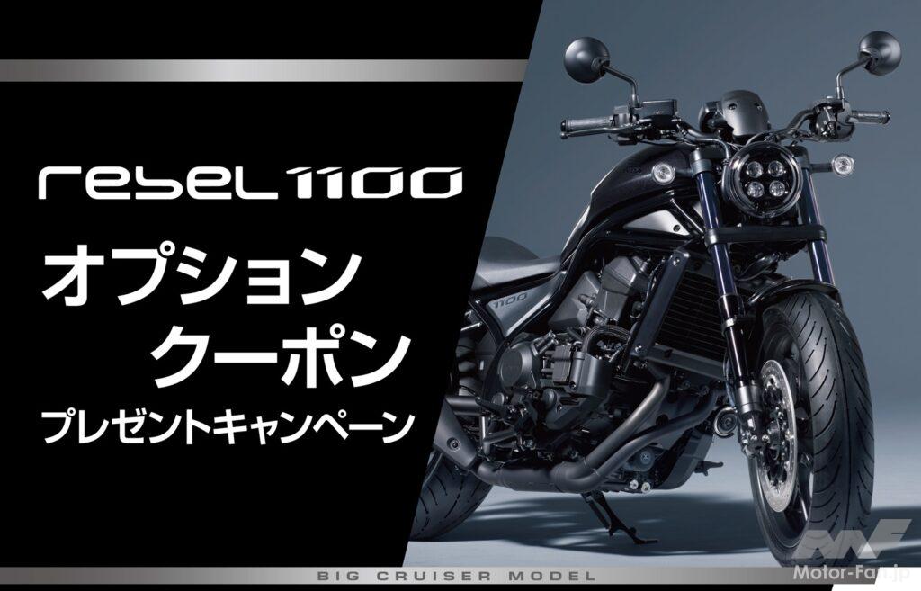 期間中、Honda Dreamにおいて Rebel1100シリーズの新車を成約した方に、Honda純正アクセサリー及びカスタマイズパーツの同時購入としてご利用いただける30,000円分(税込)のオプションクーポンをプレゼント。
