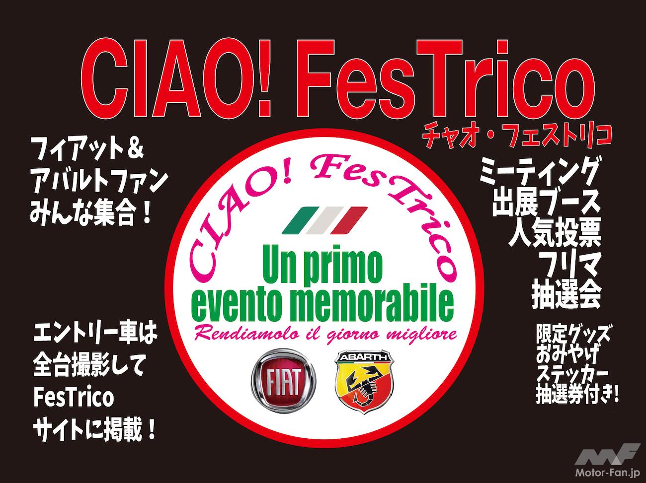 フィアットとアバルトのミーティングイベント「CIAO!FesTrico」が3月20日に開催! エントリーユーザーにはさまざまな特典もアリ!