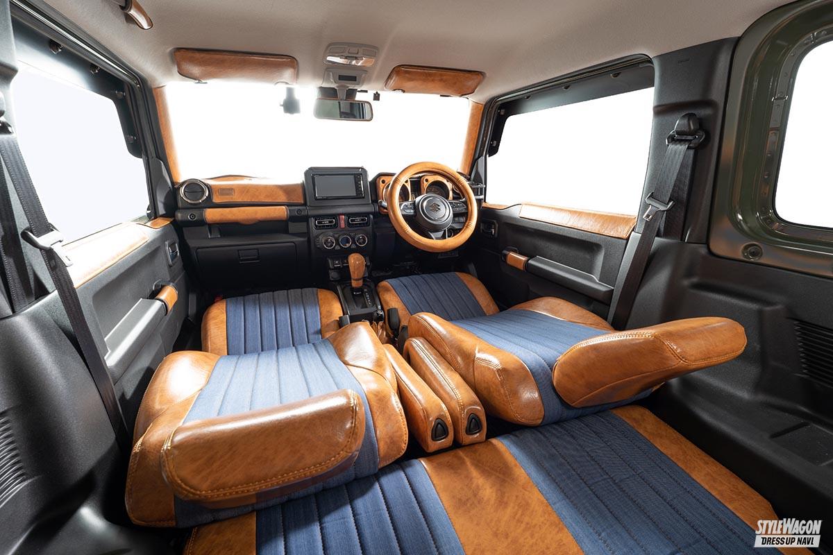 えっ、デニム素材のシートカバー!?【ジムニー&ジムニーシエラ】グレイス十八番、アンティークレザーとの組み合わせがオシャレすぎる!