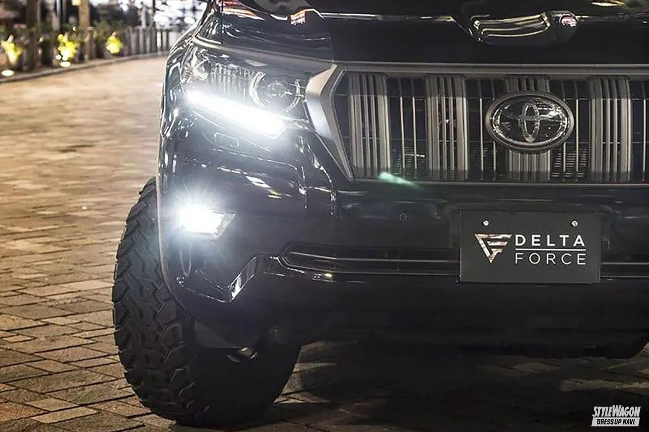 ブラックコーディネイトでちょい悪なランクルプラドが完成! ホイールの存在を際立たせるマットスモークポリッシュの選択も◎【デルタフォース・オーバル】