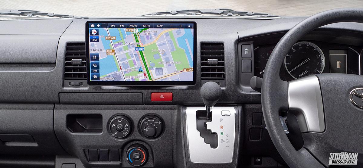 ハイエースのインパネにジャストフィット! 大画面ナビ「パナソニック・ストラーダF1Xプレミアム10」は、500車種以上のクルマに装着可能