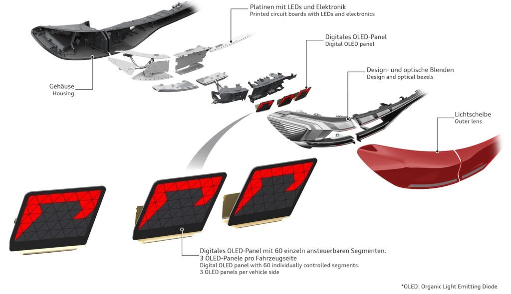 ちなみに、フロントはノーマルLED、リヤはOLED(有機LED)を使う。