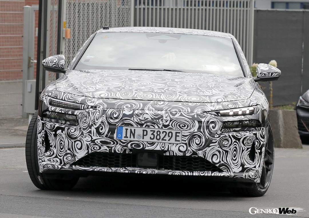 高性能フル電動サルーン「アウディ RS6 e-Tron」と「S6 e-Tron」のプロトタイプを、スクープカメラマンがキャッチした。フロントエンドは、ワイドなエアインテークが印象的だ。スプリッターや分割型ヘッドライト、垂直のエアカーテンが装備されているのが見える。カモフラージュは施されているが、アウディのロゴが配置されたグリルがクローズドタイプなのもわかる。
