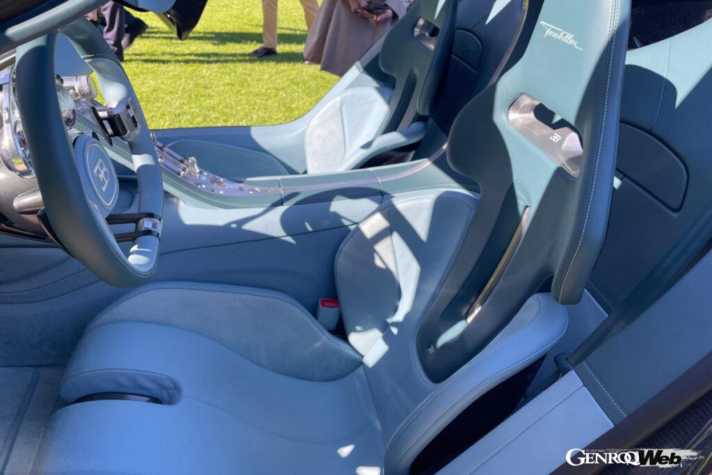 エクステリアデザインは、115年の歴史をもつブガッティらしく、「タイプ35」や「タイプ57SC」などの往年の伝説的モデルの影響を感じる。もちろん「ヴェイロン」や「シロン」から連なる馬蹄型グリルやサイドからは、ブランドの連続性を感じさせつつも、最新の機能美に溢れたデザインとなっている。