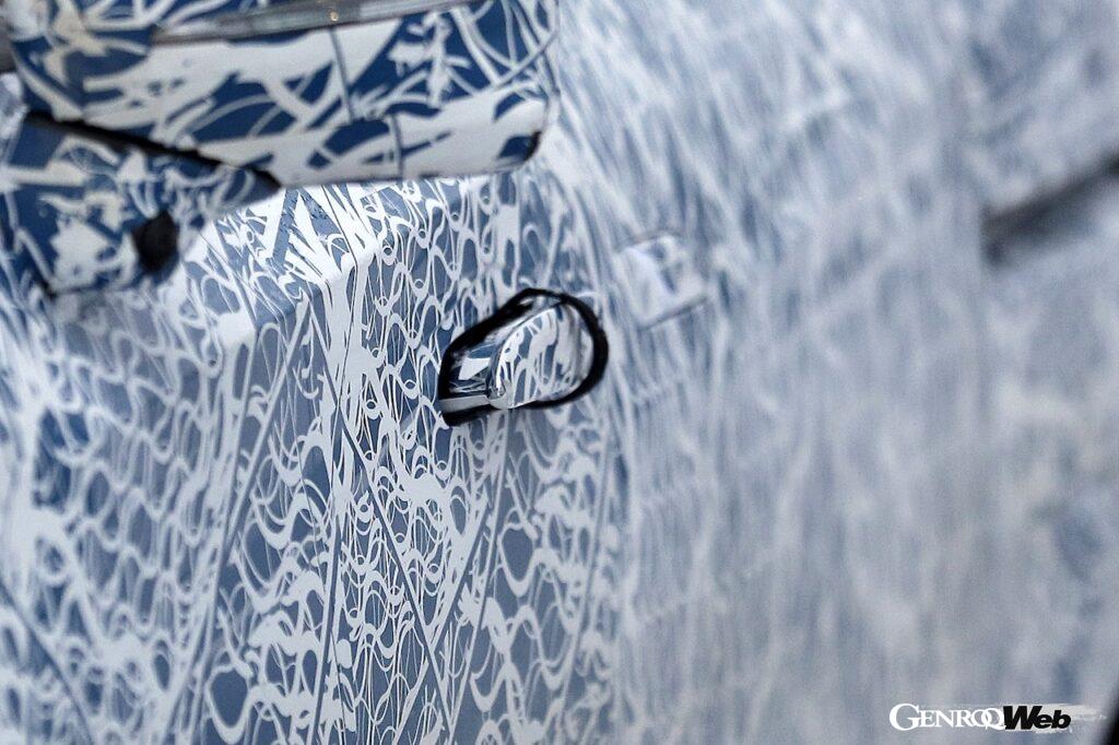 スクエアな形状のフロントエンドはカモフラージュによる可能性が高く、実際のボンネットは流線型の可能性がある。ヘッドライトにはスリムなLEDデイタイムランニングライトが配置され、シャープなデザインが施されているようだ。スポーティな印象の、高さを押さえた窓や先細りのルーフライン、フラッシュドアハンドルは量産車にも採用されると予想する。