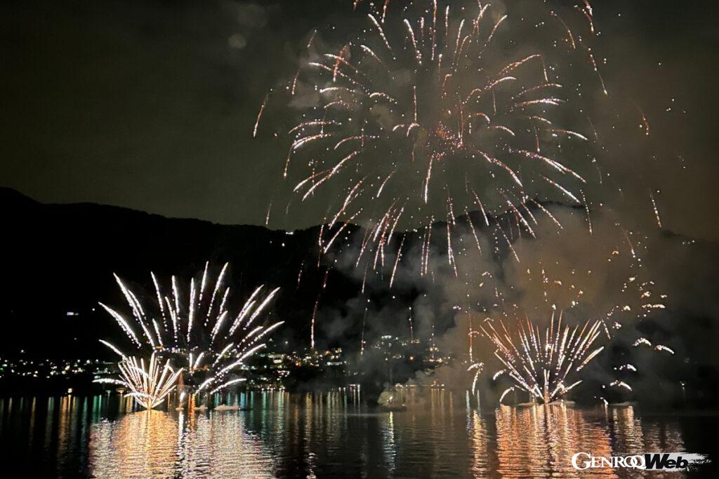車名を聞いた私は、シャンパングラスをそっと掲げて、素晴らしいクルマを見せてくれたオーナーたち、日本から参加した友人とスタッフ、そしてサイモンやジャッジをはじめとするイベントオーガナイザー側の全てのクルマ好きに感謝の意を表した。部屋に戻ると、湖上に花火が舞っているのが見えた。またいつか──、そう願ってブラックタイを外した。