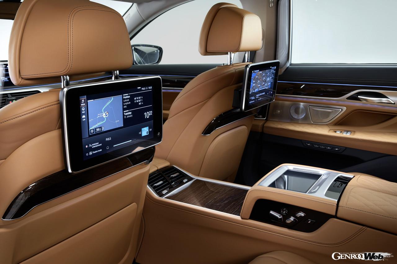 エンターテインメント性も大幅に向上。旧型は運転席と助手席のシートバックに10インチのカラーディスプレイを与える「リヤシート・エンターテインメント・エクスペリエンス」を用意していたが、新型では8K対応31インチのタッチスクリーンディスプレイを用いた「BMW シアター・スクリーン」を新たに装備。圧倒的なエンターテインメント空間を創出する。