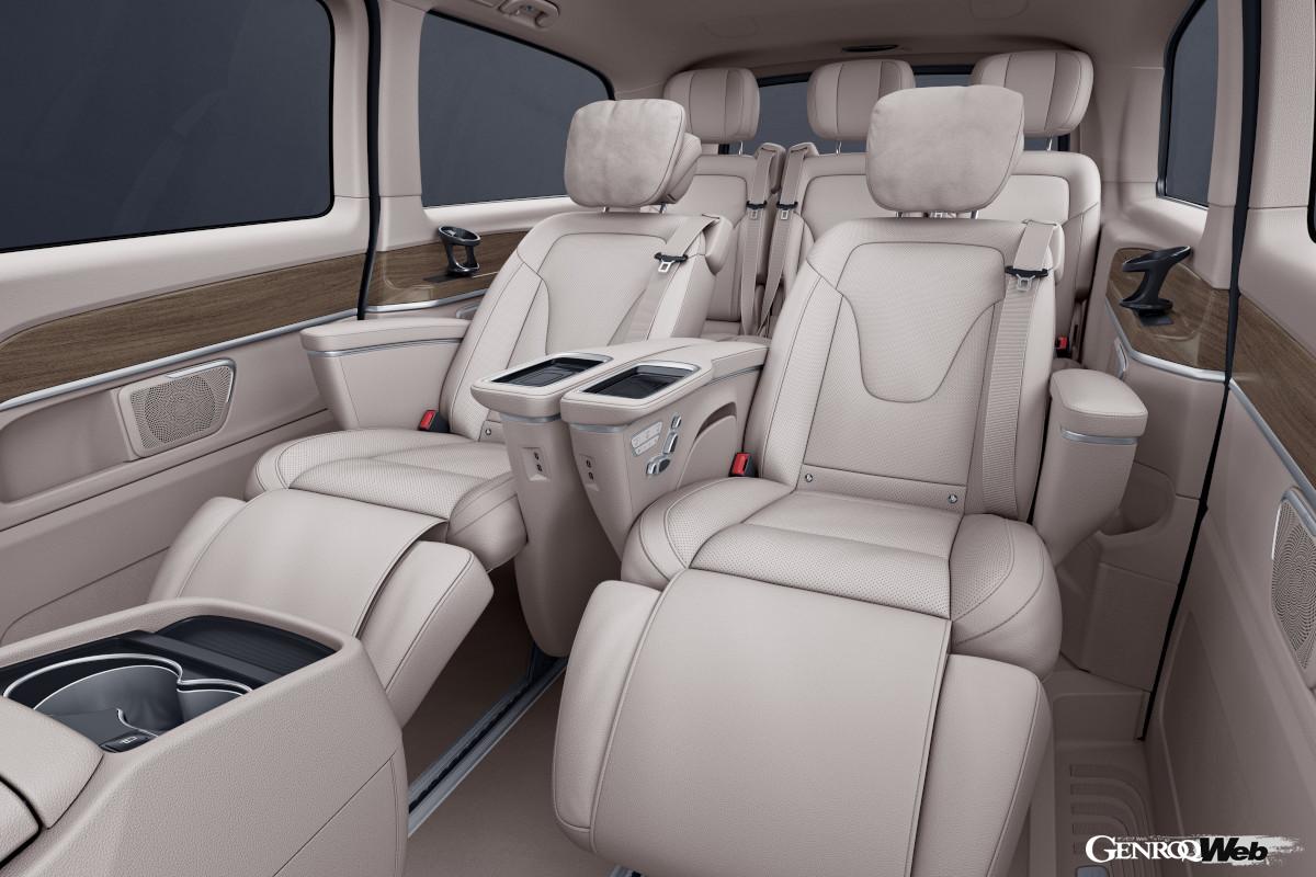 全長は、やはり日本の道路や駐車場事情を考慮してギリギリ5m以内で設定したアルファードに対し、それより短めとなるVクラスだが、ロングボディ仕様も設定することでユーザーニーズに対応。Vクラスのロングボディ仕様は全長5150mmを誇り、アルファードに対して155mmも長い。ホイールベースはVクラスが200mm長いが、これはアルファードの駆動方式がFFであるのに対して、VクラスがFRを採用していることが大きく影響している。