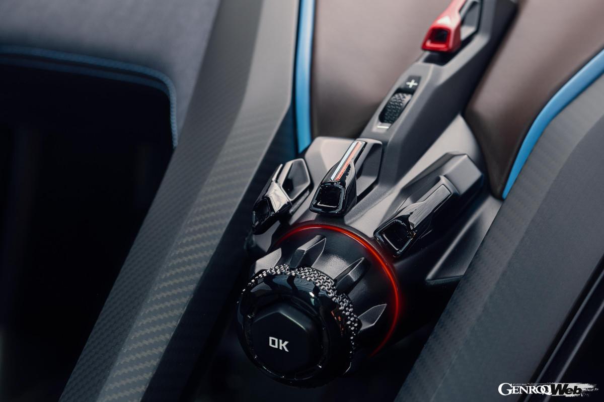 インテリアも実に未来的な空間だ。メリノウールや再生カーボンなどのインテリアに使用されている素材は、いずれも持続可能なもの。スポーツシートの発泡フォームに使われるプラスチック要素の一部は、3Dプリントされたリサイクル繊維で成型されている。