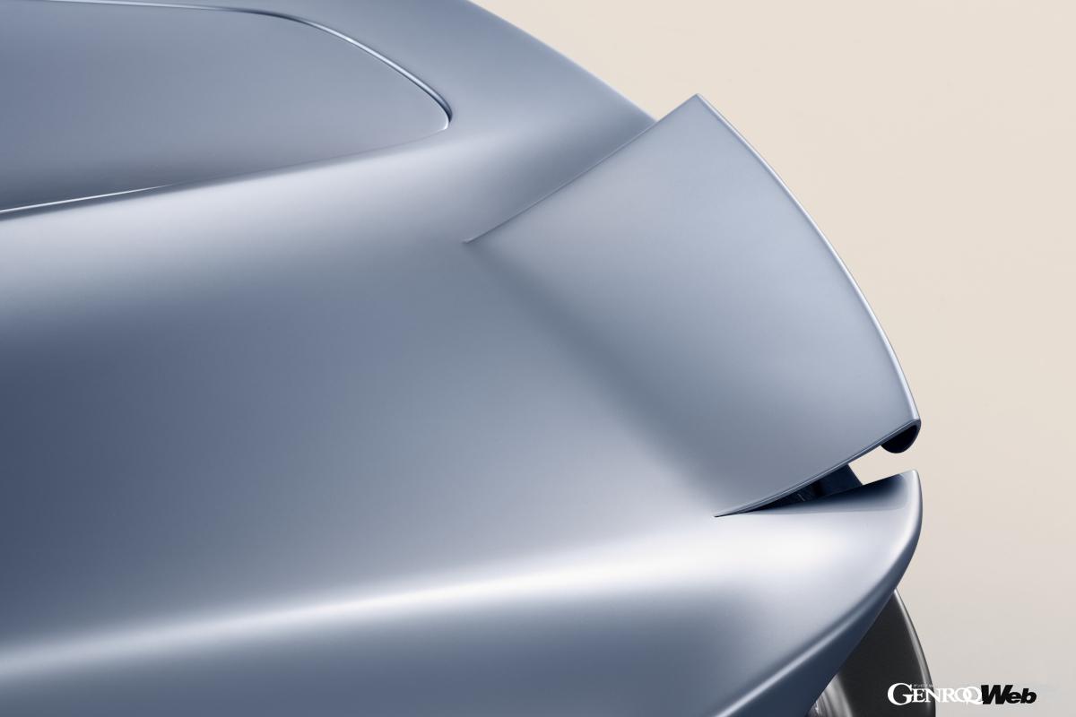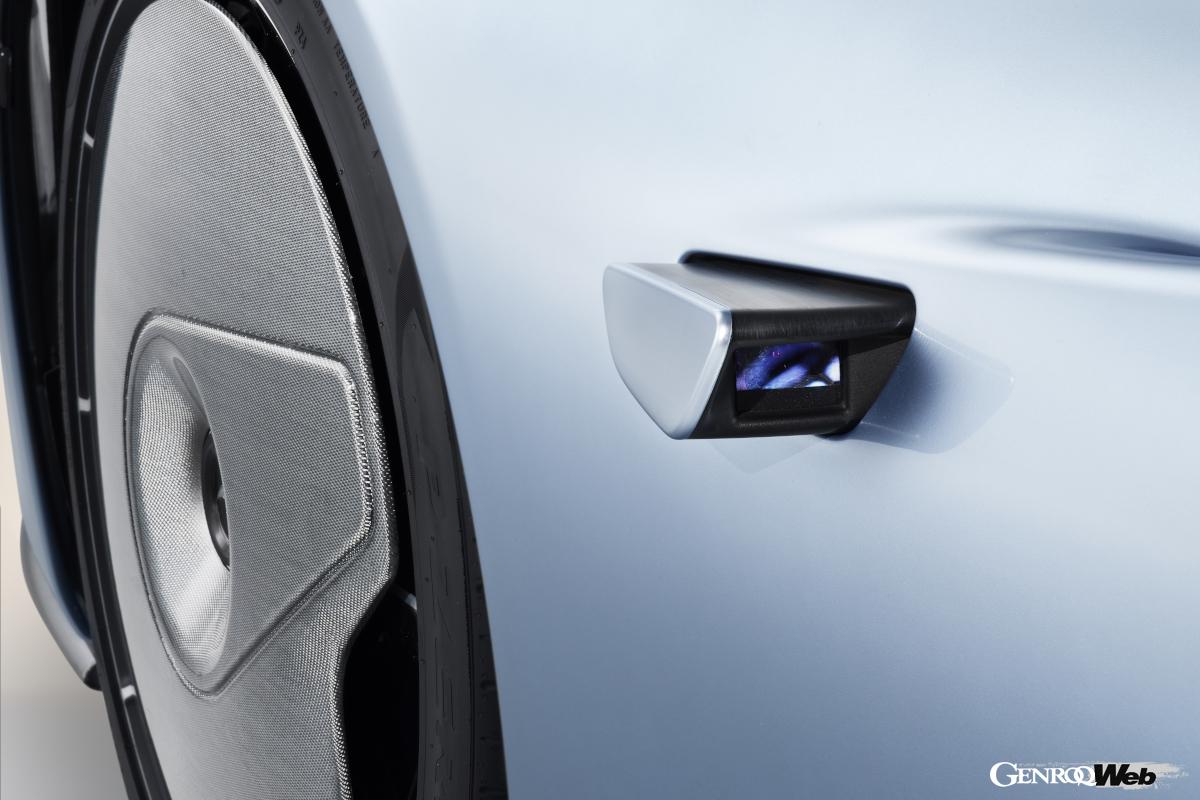 テールエンドにはリヤウイングの代わりに航空機と同様のエルロンを装備。これはテールのボディワークからそのまま形成されるもので、左右一対のそれは速度によってそのまま変形。理想的なダウンフォースを生み出すのはもちろん、エアブレーキとしての機能も果たすと説明されている。通常のサイドミラーに代わって、コンパクトなHDカメラによって、クリアなリヤサイドの映像を得るシステムを持つのもボディワークの特徴だ。