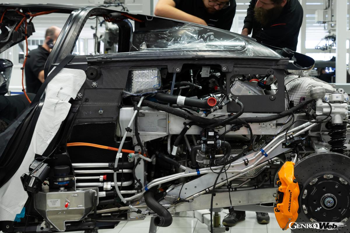 ミッドに搭載されるパワーユニットは「M840T」型、すなわち720S用のそれを改良し、さらにハイブリッドシステムを組み合わせたもの。最高出力は1050PSをシステム全体として発揮する。最高速は403km/h、0-300km/hのタイムは12.8秒というから、やはりスピードテールが単なるGTではないことは確かだ。
