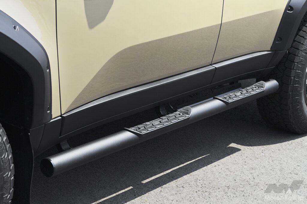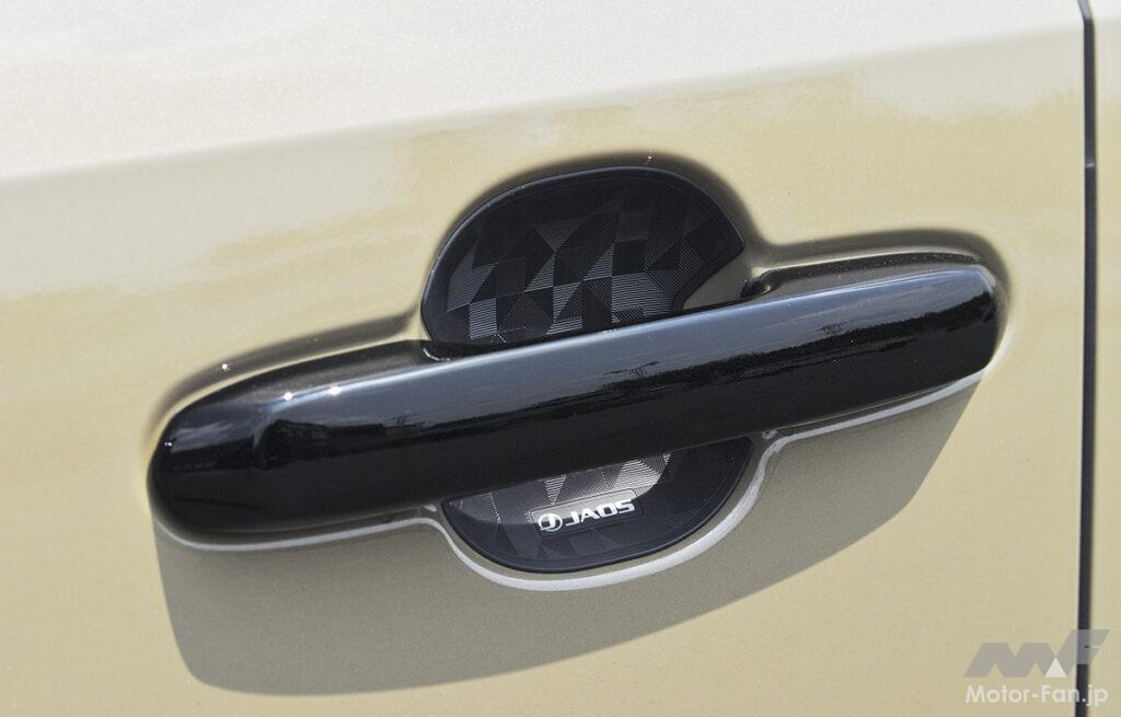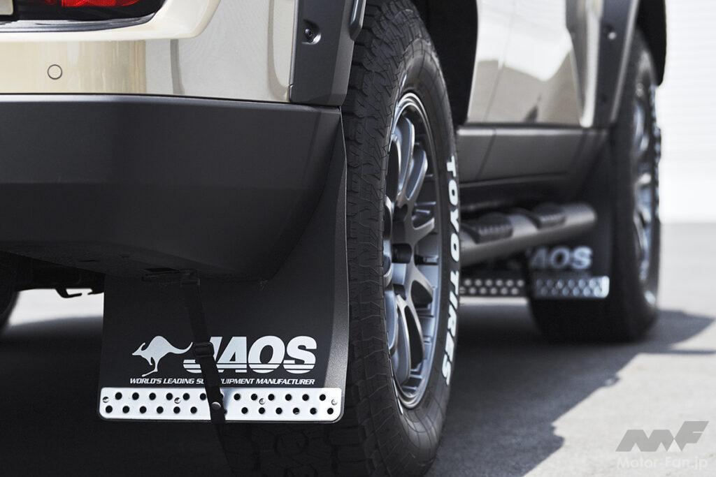 事実ジャオスは、24年には既に、このカタチのお披露目は済ませている。フロントまわりはバンパーガードとスキッドプレート、サイド部にはステップ、その他細部を彩るアイテムを……と、方向性は示していたのだ。スタイルで特徴的なのは、ゴツ過ぎない点。バンパーガードはスチール製バーではなく、樹脂製ガードとすることで、純正プラスα感を演出。しかし元がヨンクなので、スキッドプレートや、スチール製サイドステップを設定することでタフさの付与も忘れない。レクサスらしさはそのままに、その個性を最大限に活かしながらジャオステイストを追加しているのだ。