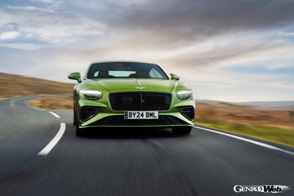 最もスタンダードな仕様は、アズールと同様に控えめなスペックのハイパフォーマンス・ハイブリッドを搭載する。ブラックのフロントグリルとグロスブラックのフロントスプリッターが力強い印象的な表情を演出している。その一方で、ベントレーが「ハーモニークリスタル」と呼ぶ、煌めきを放つヘッドライトはエレガントな佇まいが美しい。インテリアには、匠の技が注ぎ込まれたアイテムと最新テクノロジーが満載されている。また、オーナーの好みに応じたパーソナライゼーションの選択肢が豊富に用意されている。