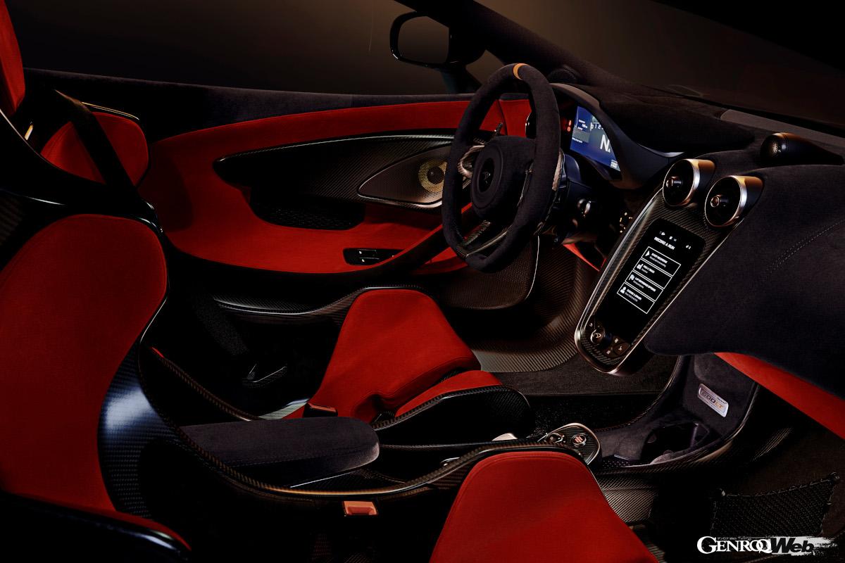 さらなる軽量化を望むカスタマーのためには、P1で初めて採用され、その後675LTでもオプション設定されたレーシングシートなどの装備がMSOから用意されていた。その総重量はスタンダードなシートより21kgも軽量なもので、キャビン全体にわたるアルカンターラ仕上げのインテリアトリムや、フットウェルやカーペットの廃止、エアコンやオーディオのレスオプションなどの選択もあった。フロントガラスやリアバルクヘッドスクリーンの厚さをより薄くすることも可能だった。よりサーキットにフォーカスしたセッティング、そして走りを実現した600LT。その生産は2018年10月から1年間の期間限定で行われた。