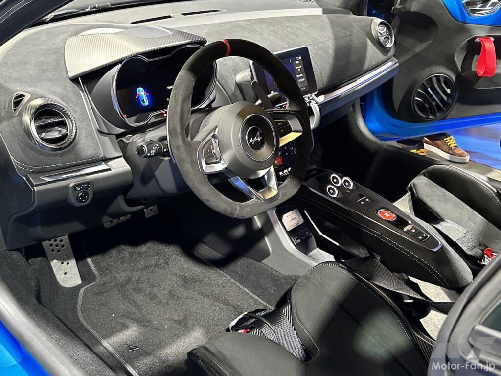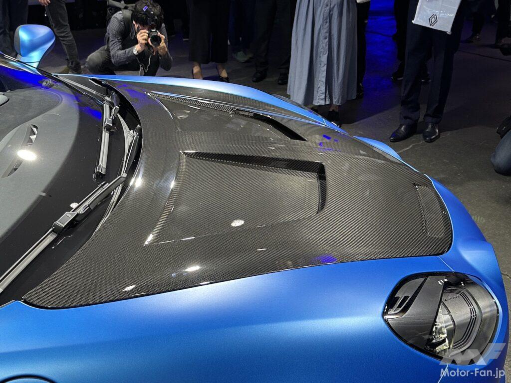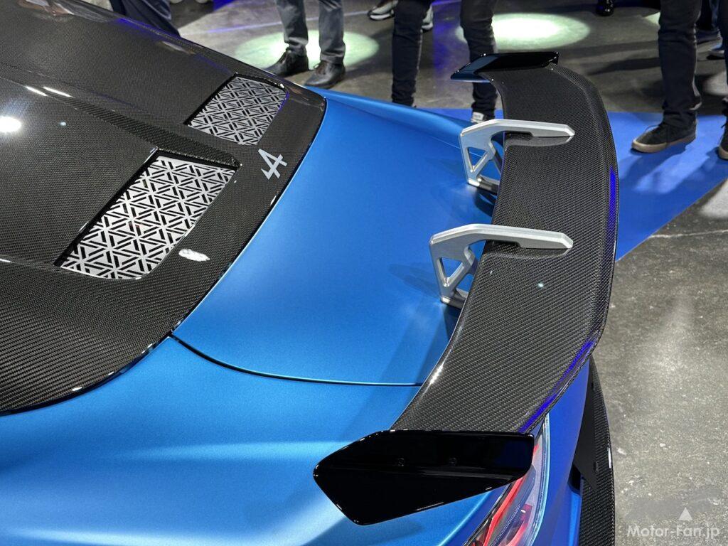 車両重量は1100kg。エアロダイナミクスは、空気抵抗を減らしつつ、より強力なダウンフォースを生み出すように強化され、A110シリーズでは初の試みとなるボンネットやリヤウィンドウ、ディフューザーなどのさまざまなパーツのデザインを見直している。