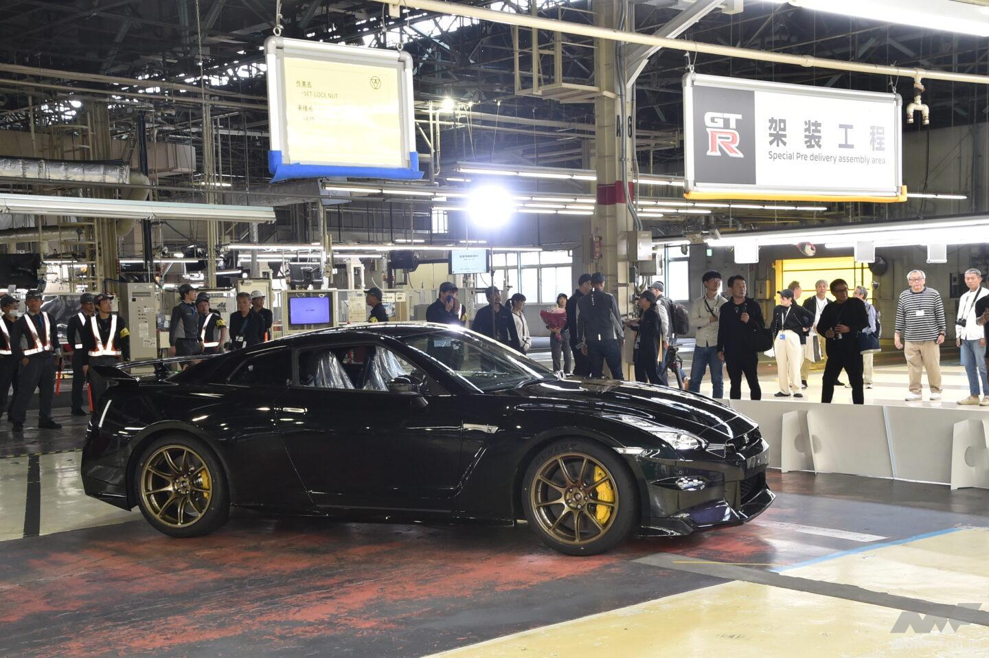 ラインオフ式では日産ブランドアンバサダーであり、”ミスターGT-R”の田村宏志氏が登壇して、その歴史やコンセプトなどを語った他、工場でまさラインオフするところが公開された。