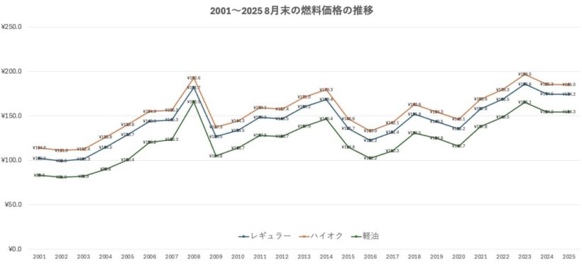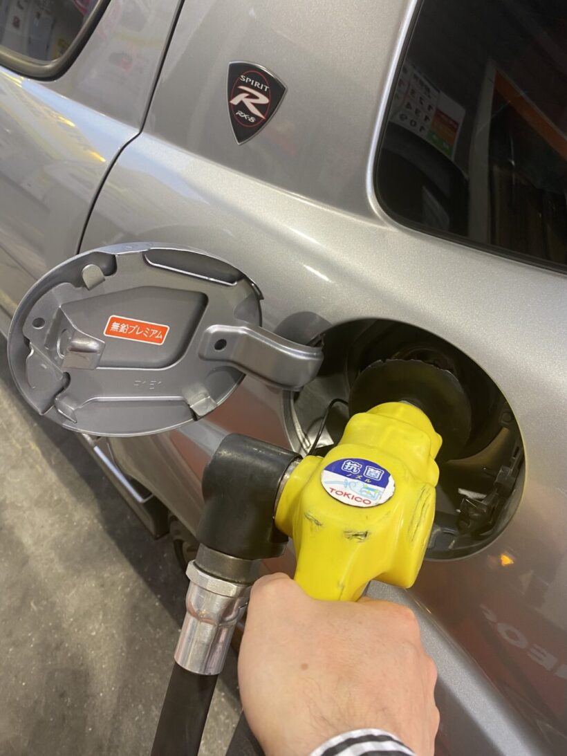 自動車業界速報 今年の夏は暑かった。ガソリン価格も高かった。21世紀に入ってからの8月末のガソリン価格の推移【写真・11枚目】 DSC_1771 Person refueling at a gas station, yellow nozzle text "High Octane", red lid text "lead free premium" この画像の記事を読む