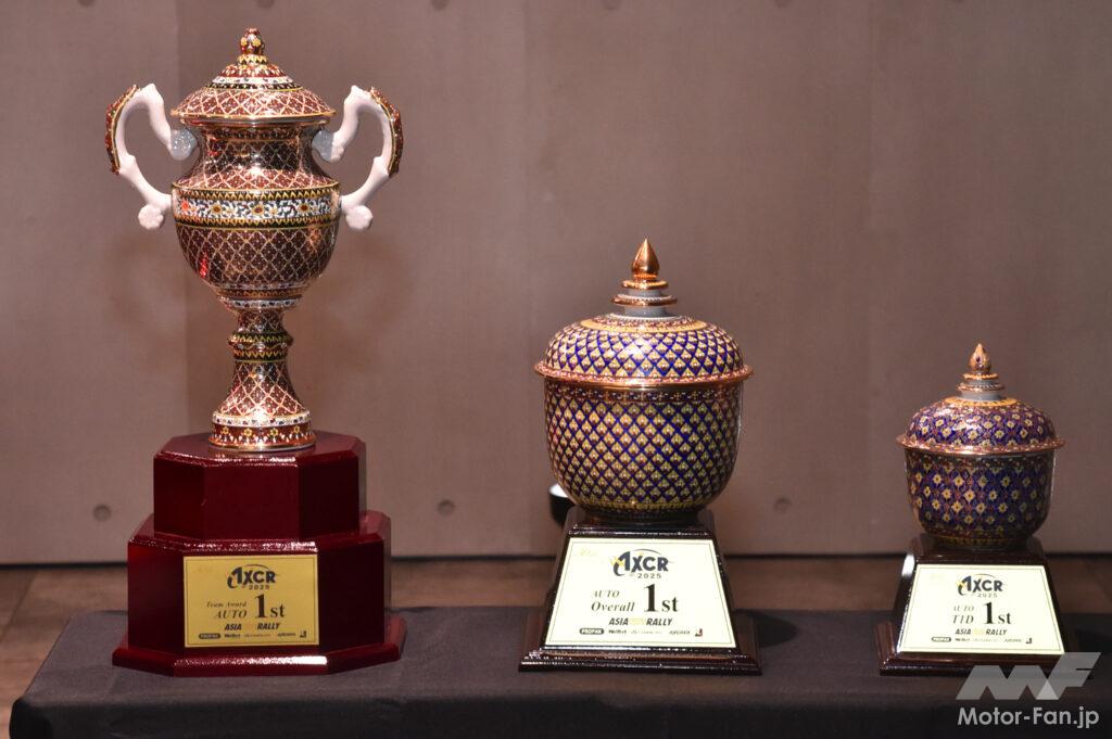 チャヤポン・ヨーター選手は2022年のウィナーであり、2024年も優勝一歩手前まで行ったエースドライバー。子供の頃から三菱自動車のパリダカールラリーやWRCを見て、三菱のラリードライバーを目指したという経歴。昨年惜敗しただけに、今回の三菱のドライバーとして優勝は本当に嬉しいと語った。