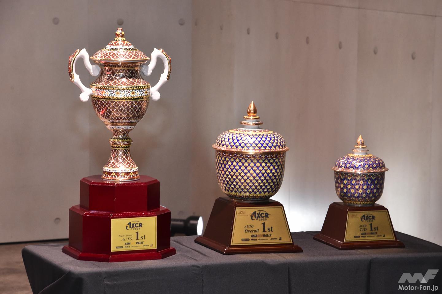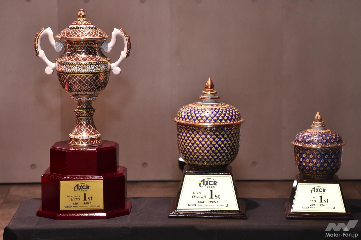三菱自動車本社ショールームにて、凱旋した増岡 浩総監督による戦勝報告が行なわれた。また、優勝車クルーであるチャヤポン・ヨーター/ピーラポン・ソムバットウォン両選手も来日し、AXCR2025の様子と今回の優勝に対する想いを語った。