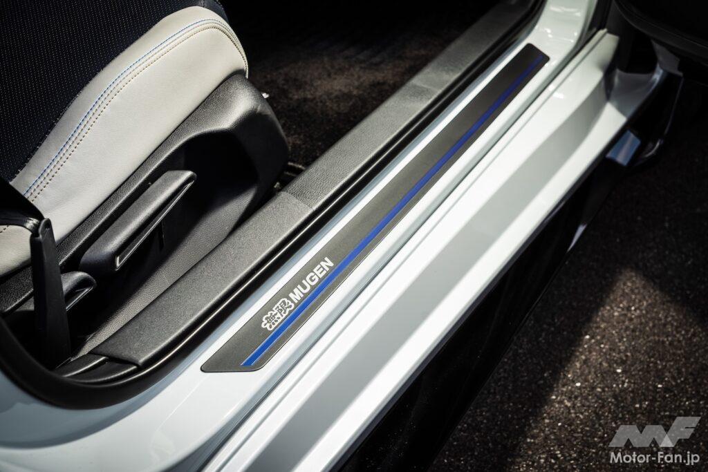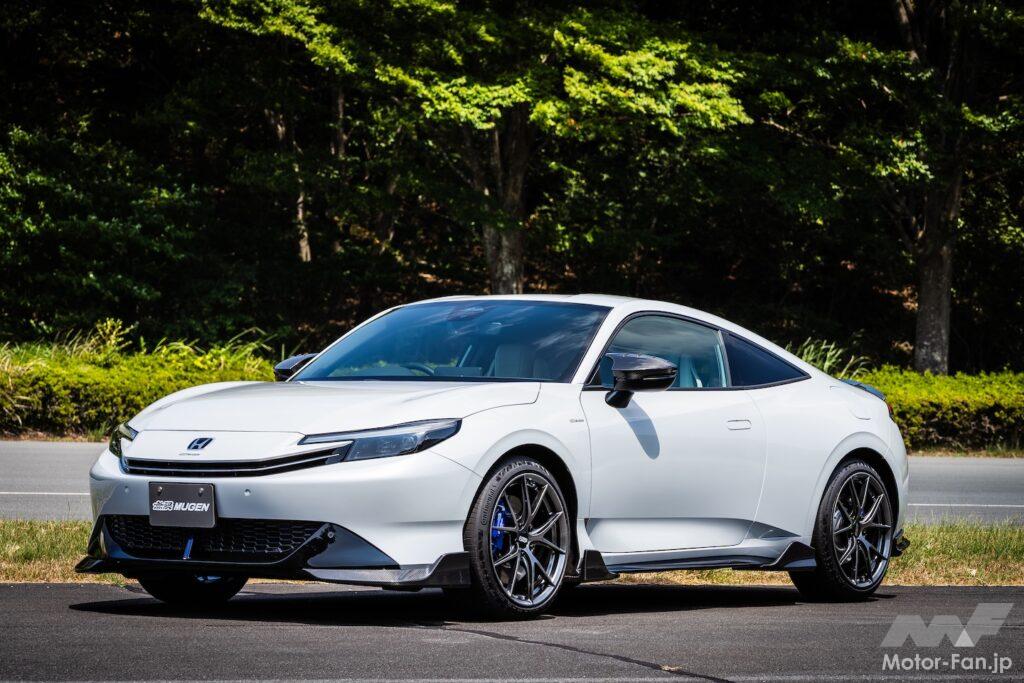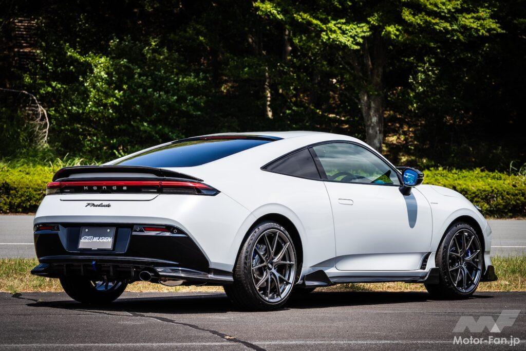 無限の新型プレリュード用アイテムの中で、まず目を引かれたのは、ドライカーボン製の各種エアロパーツだ。フロント/サイド/リア、そしてテールゲートに装着されたスポイラーが、流麗な新型プレリュードの姿を勇ましく演出する。