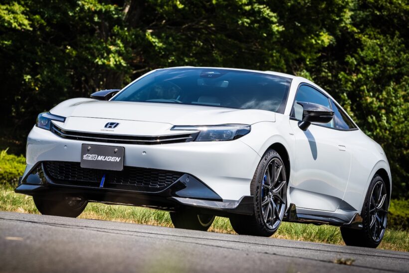 無限の新型プレリュード用アイテムの中で、まず目を引かれたのは、ドライカーボン製の各種エアロパーツだ。フロント/サイド/リア、そしてテールゲートに装着されたスポイラーが、流麗な新型プレリュードの姿を勇ましく演出する。