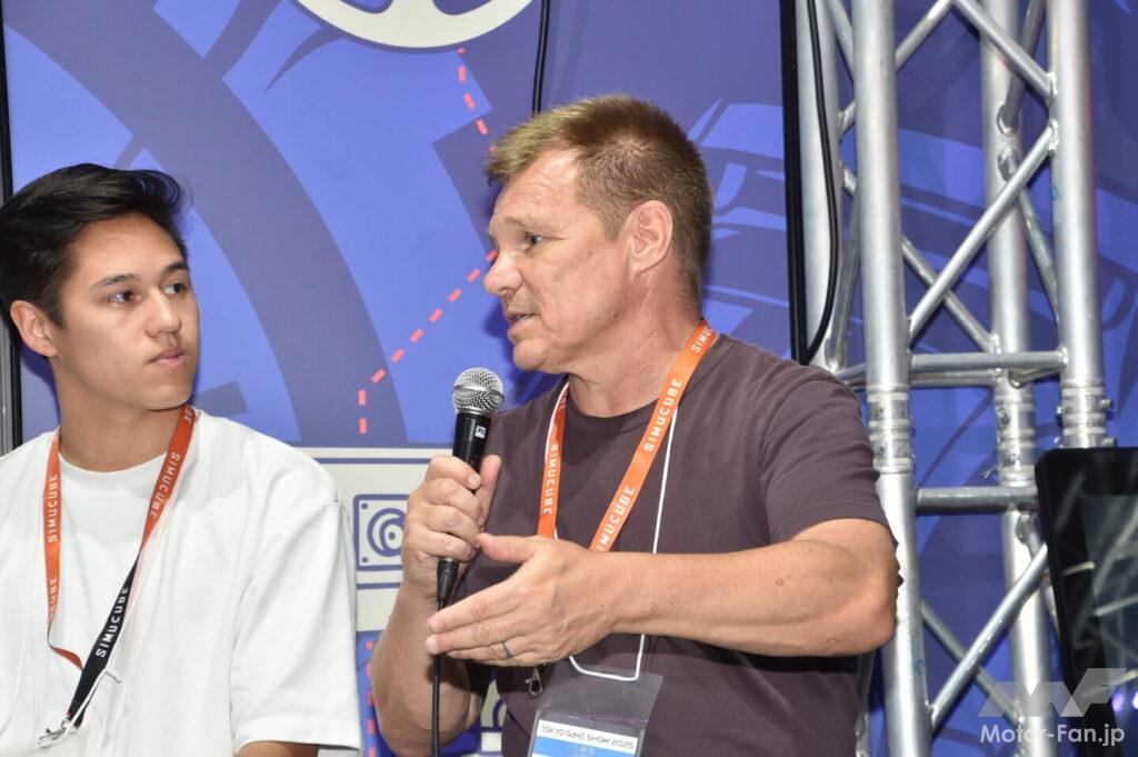 ミカ・サロはトークセッションで、もしレーサーを志すならレーシングシミュレーターは是非とも導入すべき、とその有用性を強くアピール。