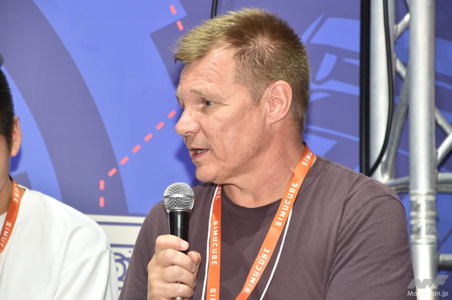 ミカ・サロはトークセッションで、もしレーサーを志すならレーシングシミュレーターは是非とも導入すべき、とその有用性を強くアピール。