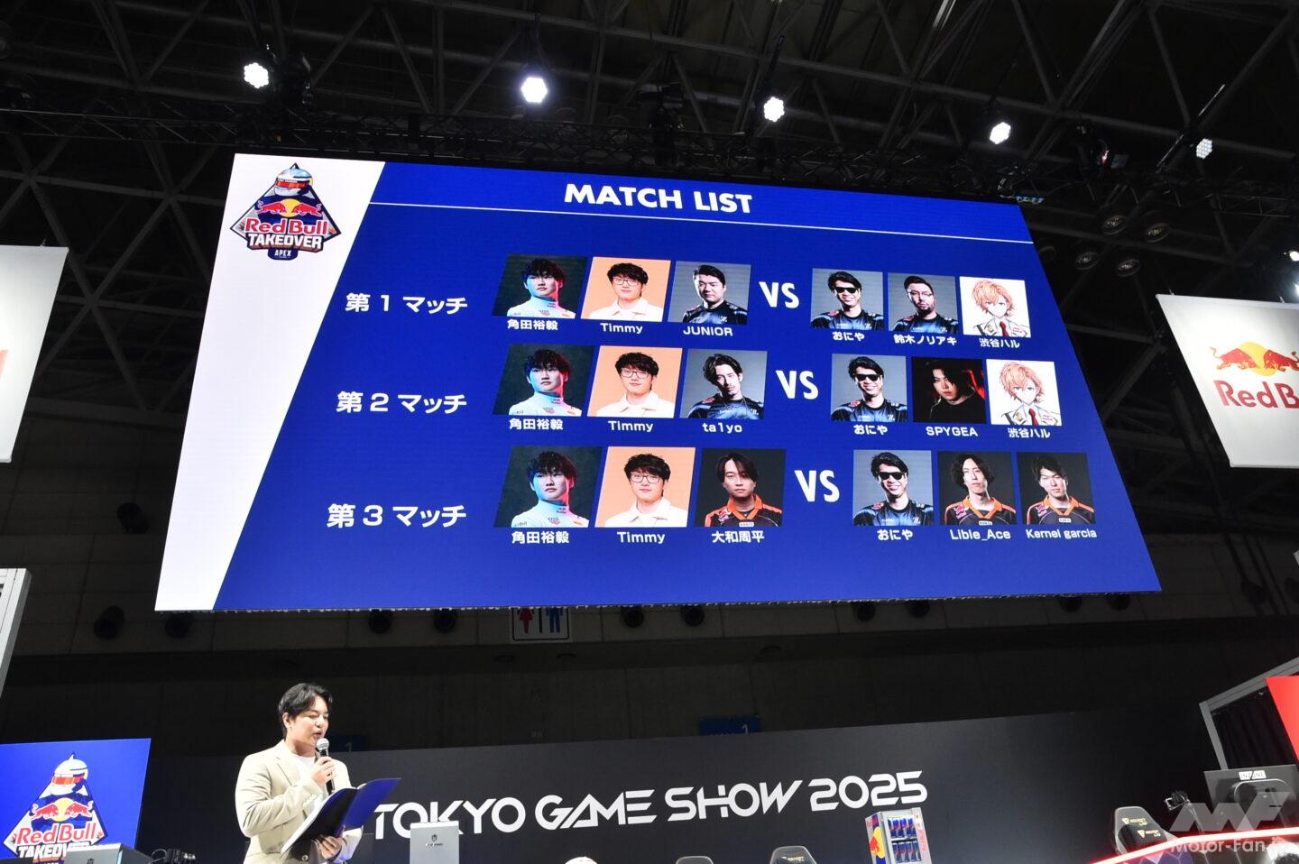 バトルは3対3のチーム戦で先行40キル(先に相手を40回倒す)。「角田チーム」は角田選手とティミーを軸に、残りひと枠が3人入れ替わる。対する「おにやチーム」はおにやを軸にのべ5名が入れ替わる形となった。