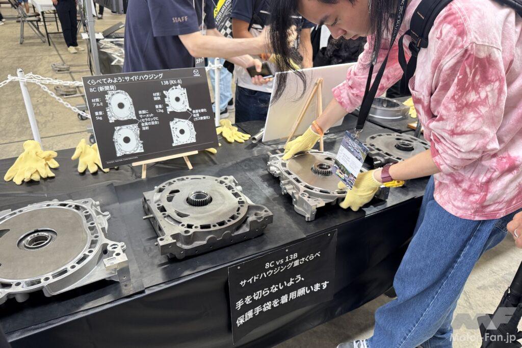 ほかにも8Cと13B、新旧ロータリーエンジンのサイドハウジングの重さ比べ(!)など、マニア心をくすぐりつつ、子どもも楽しめる工夫が凝らされたコンテンツが勢揃いだ。